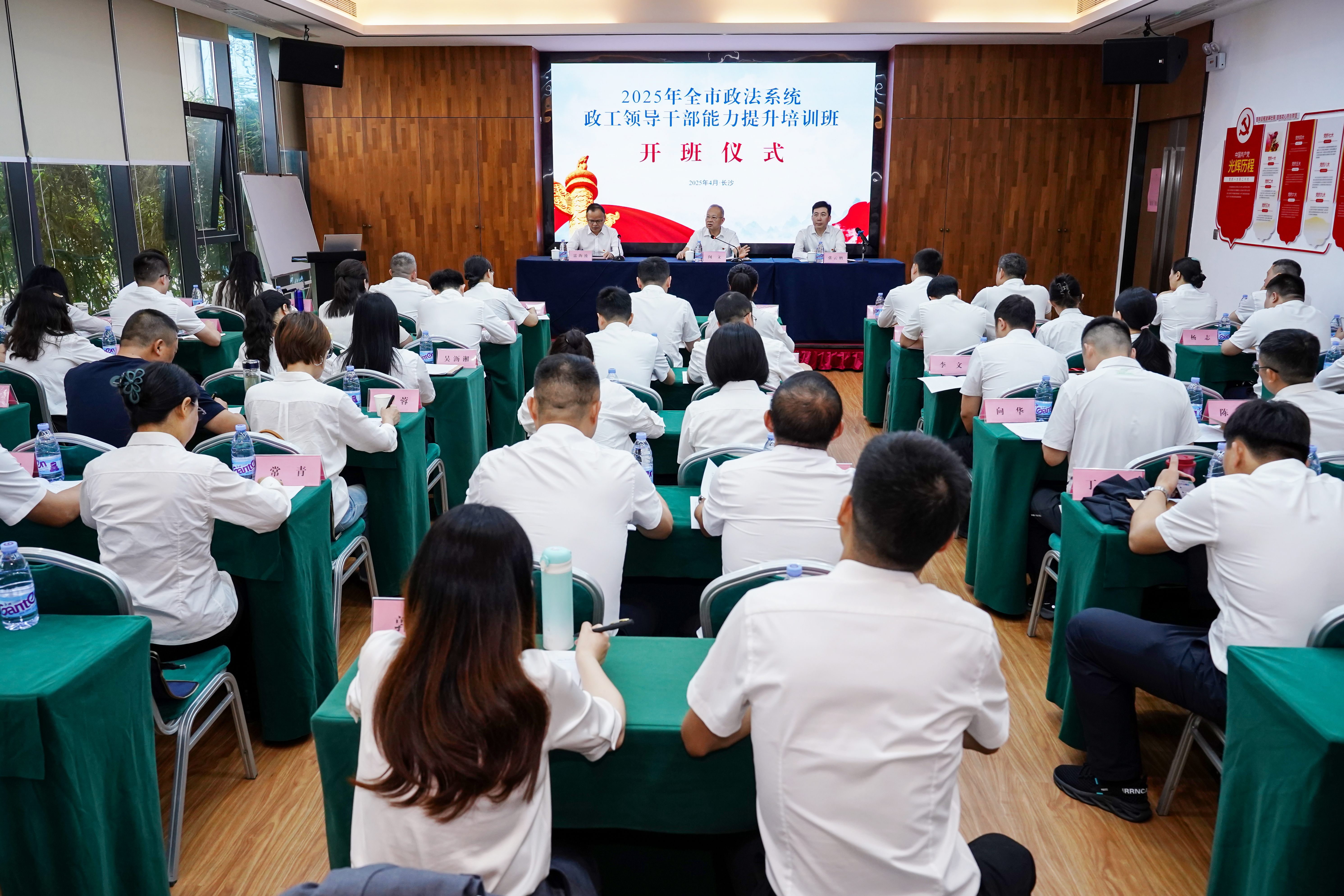 4月21日上午,2025年全市政法系统政工领导干部能力提升培训班开班。市委政法委分管日常工作的副书记闵文出席开班仪式并讲话。市委政法委副书记、政治部主任张云鹏出席开班仪式。长沙开慧教育学院院长雷海波致辞。