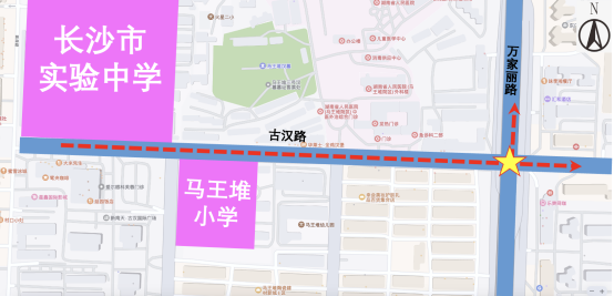长沙市实验中学、马王堆小学位于万家丽路古汉路口西边,7:00-7:30送学高峰时段车辆大多聚集于万家丽路古汉路口西口,通过增加西口绿灯10-15秒,保障西口通行能力,缓解路口车辆积压的情况。